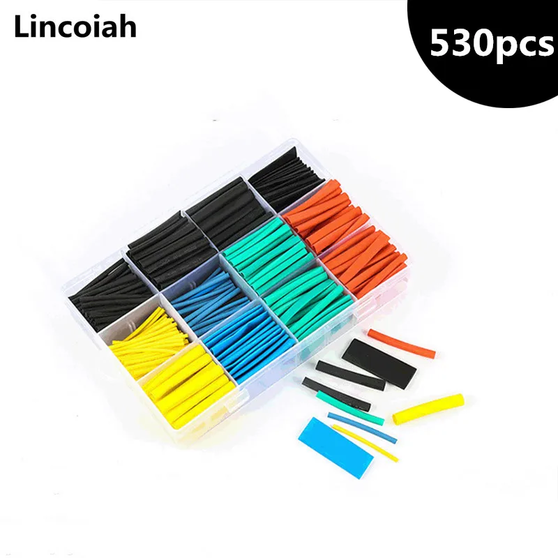 530pcs/set Heat Shrink Sleeving Tubing Tube Assortment Kit Wrap Cable Weatherproof Electrical Connection Electrical Wire 2:1