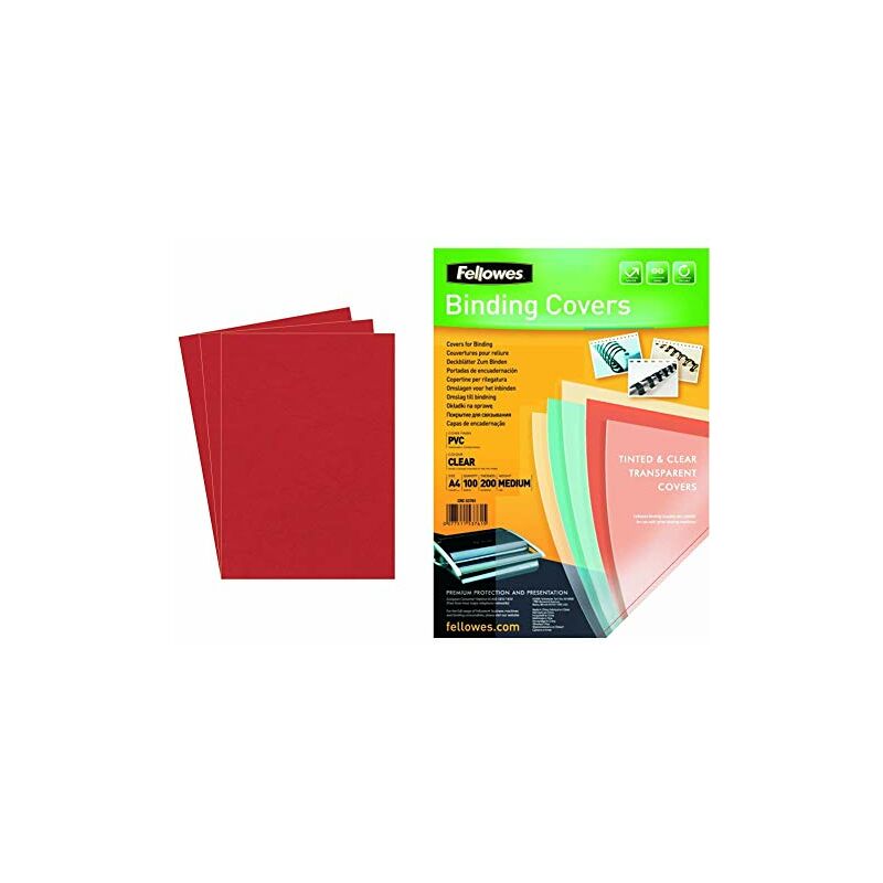 Fellowes 5371603 Copertine Per Rilegatura Delta Fsc, Formato A4, Confezione Da 100 Pezzi, Rosso Scuro & Copertine Per Rilegatrice In Pvc Trasparente, 180 Mic, 100 Pezzi, A4 100 pezzi