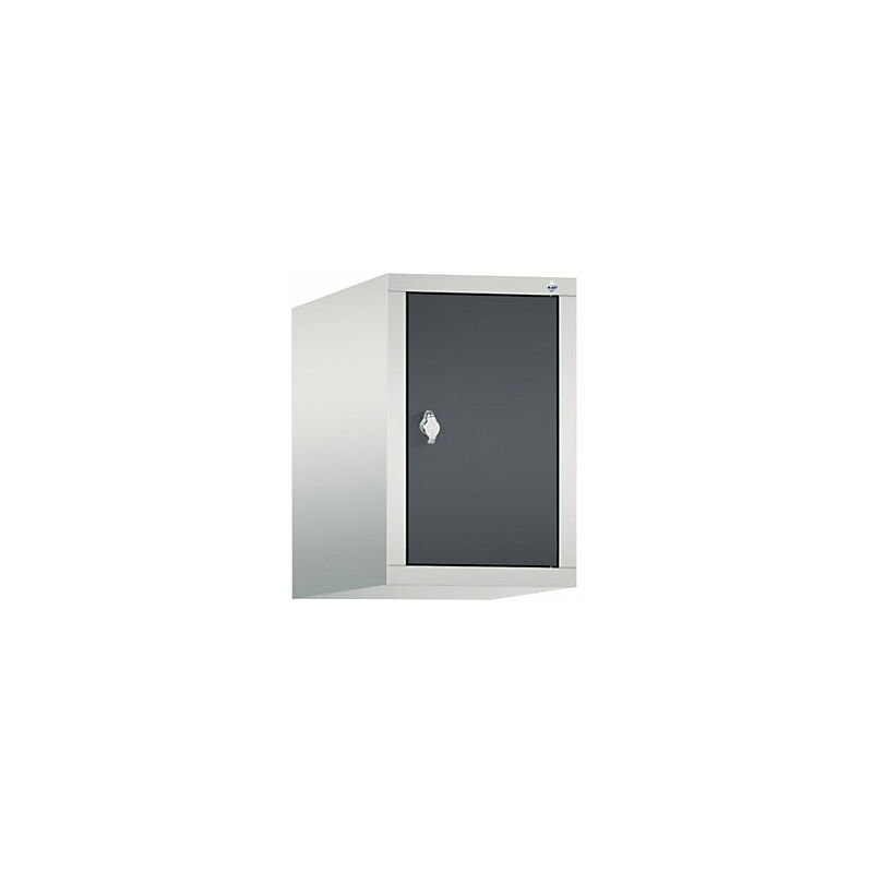 Armadietto sovrapponibile CLASSIC, 1 vano, larghezza vano 300 mm, grigio chiaro / grigio nerastro. Fornitura = montato. Altezza = 500 mm. Profondità = 500 mm. Larghezza = 320 mm. Colore corpo = grigio chiaro RAL 7035. Colore porta = grigio nerastro RAL 7021. Serratura = chiavistello girevole predisposto per lucchetto. Numero scomparti in larghezza = 1 pz. Numero scomparti = 1 pz. Larghezza scomparti = 300 mm. Materiale = lamiera d'acciaio. Altezza armadietto = 500 mm. Dotazione interna = senza dotazione interna. Larghezza interna = 230 mm. Altezza interna = 430 mm. Profondità interna = 465 mm. Tipo di porta = anta a battente. Altezza scomparti = 500 mm. Larghezza ripiani = 300 mm. Profondità ripiani = 500 mm. Struttura = con saldatura. Superficie = verniciatura. Struttura in acciaio di lunga durata. Angolo di apertura anta 110°. Verniciatura a forno di qualità per elevata resistenza ai raggi UV e alla corrosione. Ammortizzatore battuta anta di serie. Chiavistello girevole per lucchetto