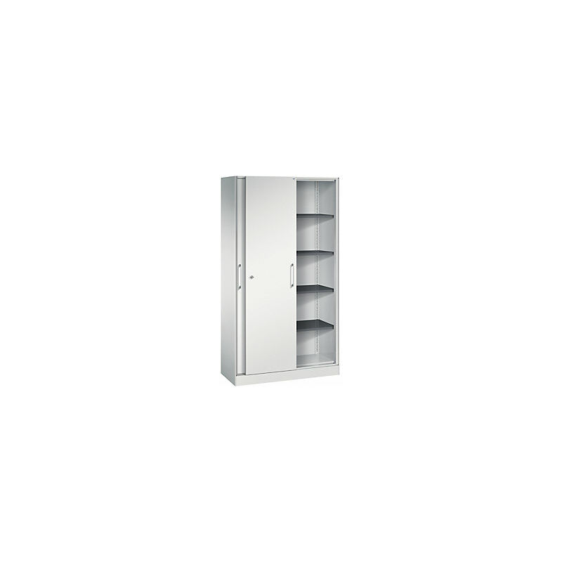 Armadio con ante scorrevoli ASISTO, altezza 1980 mm, larghezza 1000 mm, grigio chiaro/grigio chiaro. Fornitura = montato. Larghezza = 1000 mm. Altezza = 1980 mm. Profondità = 435 mm. Colore corpo = grigio chiaro RAL 7035. Materiale = lamiera d'acciaio. Tipo di prodotto = armadi con ante scorrevoli. Tipo di porta = porta scorrevole. Colore porta = grigio chiaro RAL 7035. Numero ante = 2 pz. Numero ripiani = 4 pz. Materiale ripiani = acciaio. Colore ripiani = grigio nerastro RAL 7021. Portata per ripiano = 70 kg. Caratteristiche = con serratura. Serratura = serratura a cilindro girevole a pressione, serratura a cilindro a leva. Numero file raccoglitori = 5 pz. Dotazione interna = 4 ripiani. Passo di regolazione altezza ripiani = 15 mm. Altezza zoccolo = 90 mm. Spessore ripiani = 24 mm. Spessore del corpo = 0.88 mm. Spessore porta = 19 mm. Corpo in robusta costruzione d'acciaio con verniciatura a forno di alta qualità per un'elevata resistenza ai raggi UV. Design elegante con effetto