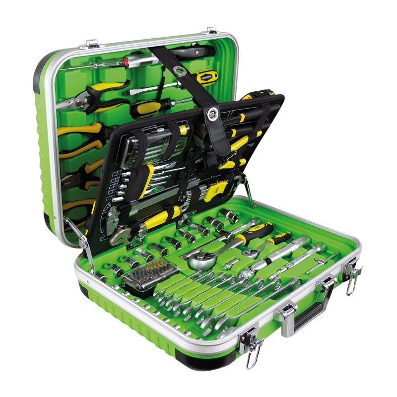 Valigia portautensili contenente: Utensili TRAY 1 1/2": 10 bussole esagonali: 10, 11, 12, 13, 14, 15, 17, 19, 22, 24 2 bussole candela: 16, 21 mm 1 giunto cardanico 2 barre di prolunga: 125,250mm 1 adattatore 3/8" femmina-1