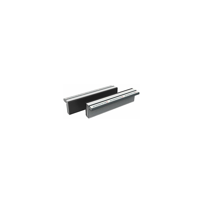 Ganasce magnetiche, in alluminio temprato con rivestimento in gomma, 1 coppia, larghezza ganasce 180 mm. Fornitura = montato. Larghezza ganasce = 180 mm. Materiale = alluminio, gomma. Colore = alluminio. Tipo di prodotto = ganasce. Per pezzi di forma irregolare, tubi sottili, pezzi delicati ecc. Presa salda e sicura. Con strisce magnetiche estremamente potenti, per un montaggio semplice e rapido. Per tutti i tipi di morse. Ganasce di protezione in alluminio temprato con rivestimento in gomma. Alluminio 6063, T66F25 con lega di magnesio e silicio. Eccellente protezione dalla corrosione con finitura superficiale di prima qualità. È la lega perfetta per serrare in modo sicuro in una morsa proteggendo i pezzi delicati. Strisce magnetiche al neodimio estremamente potenti.