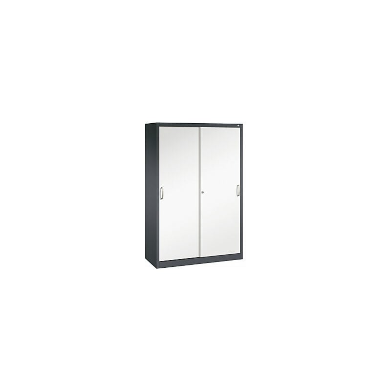 Armadio con ante scorrevoli ACURADO, 6 guide mobili, alt. x largh. x prof. 1950 x 1200 x 500 mm, grigio nerastro / bianco traffico. Fornitura = montato. Larghezza = 1200 mm. Altezza = 1950 mm. Profondità = 500 mm. Colore corpo = grigio nerastro RAL 7021. Materiale = acciaio, con verniciatura a forno. Tipo di prodotto = armadi con ante scorrevoli. Tipo di porta = porta scorrevole. Colore porta = bianco traffico RAL 9016. Numero ante = 2 pz. Numero ripiani = 0 pz. Caratteristiche = con serratura. Serratura = serratura a cilindro girevole a pressione, serratura a cilindro a leva. Numero file raccoglitori = 0 pz. Dotazione interna = 6 guide mobili Elba / Leitz. Passo di regolazione altezza ripiani = 15 mm. Altezza zoccolo = 100 mm. Spessore del corpo = 0.88 mm. Spessore porta = 19 mm. Ante scorrevoli in acciaio su rotelle in speciali guide di scorrimento. Armadietto in acciaio con ante scorrevoli ACURADO, corpo in robusta struttura d'acciaio con verniciatura a forno di alta qualità per