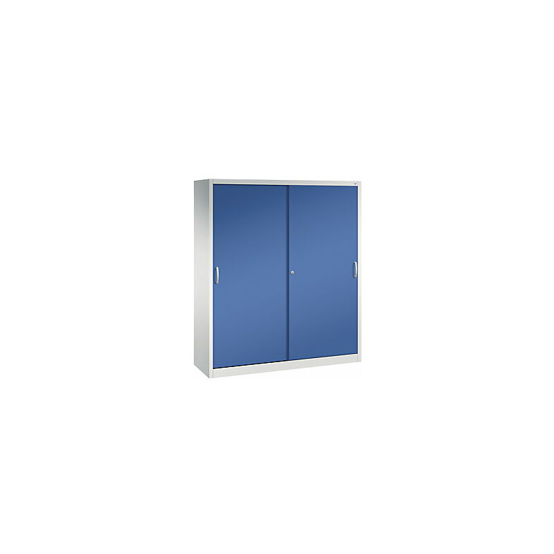 Armadio con ante scorrevoli ACURADO, 6 ripiani, 2 scomparti con serratura, alt. x largh. x prof. 1950 x 1600 x 500 mm, grigio chiaro / blu genziana. Fornitura = montato. Larghezza = 1600 mm. Altezza = 1950 mm. Profondità = 500 mm. Colore corpo = grigio chiaro RAL 7035. Materiale = acciaio. Tipo di prodotto = armadi con ante scorrevoli. Tipo di porta = porta scorrevole. Colore porta = blu genziana RAL 5010. Numero ante = 2 pz. Numero ripiani = 2x3 pz. Materiale ripiani = acciaio, con verniciatura a forno. Colore ripiani = grigio chiaro RAL 7035. Portata per ripiano = 70 kg. Caratteristiche = con serratura. Serratura = serratura a cilindro girevole a pressione, serratura a cilindro a leva. Numero file raccoglitori = 5 pz. Dotazione interna = 6 ripiani, 2 scomparti con serratura, parete divisoria centrale. Passo di regolazione altezza ripiani = 15 mm. Altezza zoccolo = 100 mm. Spessore ripiani = 24 mm. Spessore del corpo = 0.88 mm. Spessore porta = 19 mm. Ante scorrevoli in acciaio su