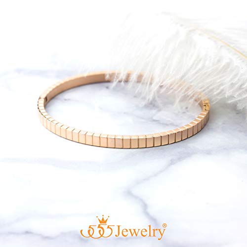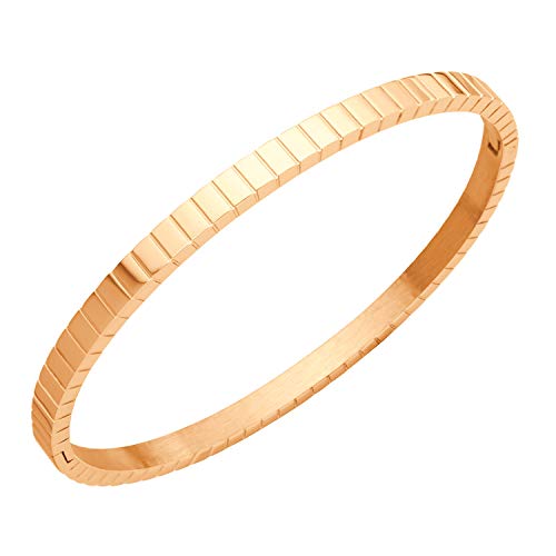 DESIGN Elegante braccialetto unisex braccialetto, questo braccialetto alla moda in acciaio inox oro rosa progettato con un bel motivo e una finitura lucida a specchio che aggiunge un tocco di glam e dispone di chiusura sicura della cerniera e 60 millimetri di diametro confortevole vestibilità.