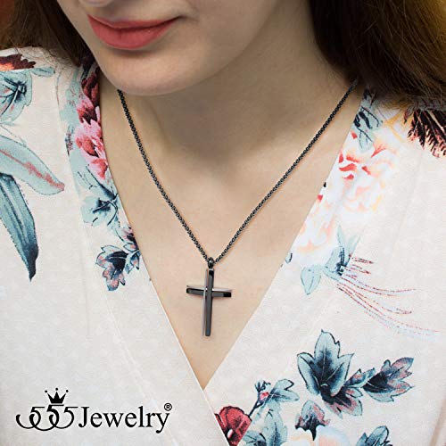 Design: collana a croce dal design esclusivo per uomini e donne, questa collana a croce argento/nero da donna progettata con scanalatura sottile e forma a mezza cupola in una finitura lucida a specchio che gli conferisce un look moderno e alla moda, completata da una catena a scatola da 2,5 mm disponibile in una vasta gamma di lunghezze che ti aiuta a scegliere quello giusto per te.