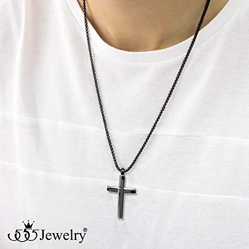 555Jewelry Collana a croce in acciaio inox scanalata per uomini e donne 40,6-61 cm catena, Metallo