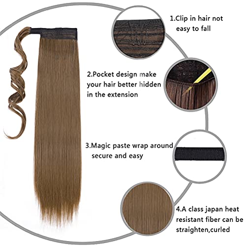 55cm Coda di Cavallo Extension Finta Coda Capelli Lisci Ponytail Extension Effetto Naturale Pasta Magica Wrap Around Parrucchino Capelli Coda Nero scuro