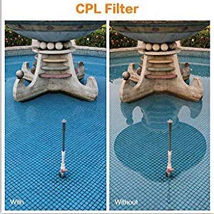 UV Filter: Reduce haze and improve contrast to your images by minimizing ultra-violet light. CPL Filter: Remove unwanted reflections from non-metallic surfaces such as water or glass and glare from the sun. ND4 Filter: Reduce the intensity of light by two degree without appreciably changing its color.