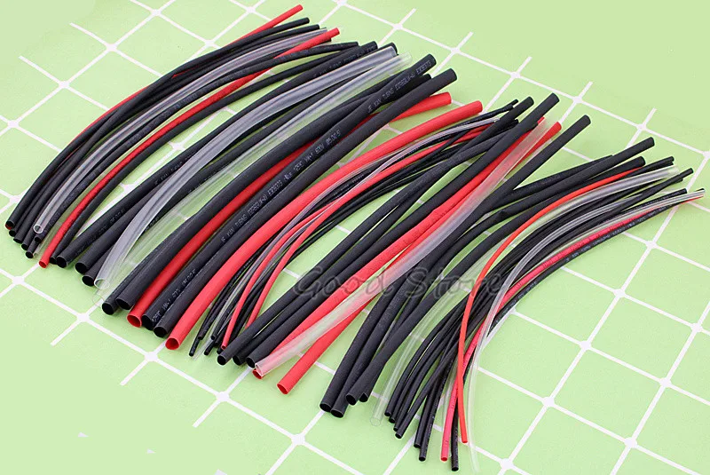 55Pcs/Bag Red Black 2:1 Heat Shrinkable Tube Bag Heat Shrinkable Tube Color Halogen-Free Flame Retardant PE Insulation Sleeve