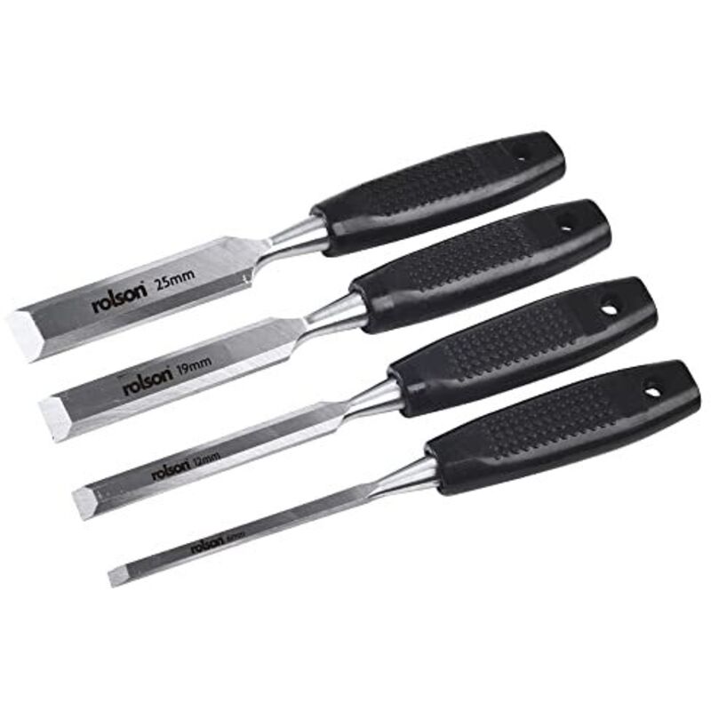 Descrizione Rolson - Scalpello per legno, set da 4 pezzi 4 SCALPELLI PER legno Lame di precisione Lame forgiate, trattate termicamente Manico in plastica resistente agli urti Dimensioni: 6, 12, 19, 25 mm x 235 mm