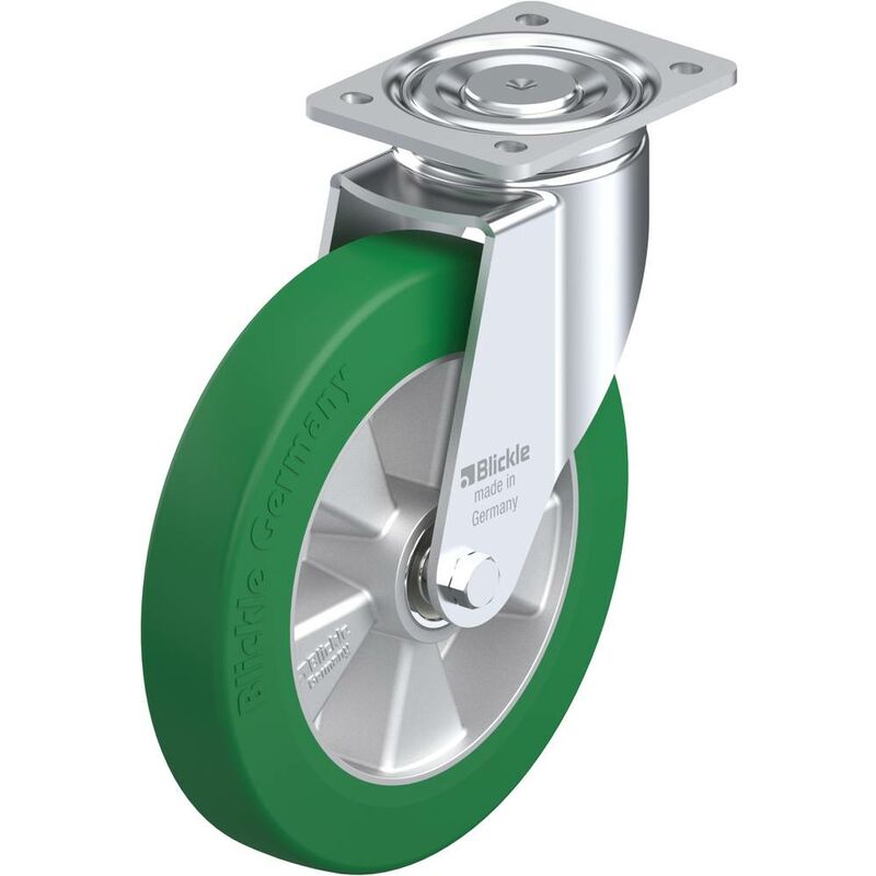Dettagli tecnici Capacità di carico (max.) 850 kg Caratteristiche ruote con piastra avvitabile Colore Verde Contenuto 1 pz. Diametro ruota 250 mm Materiale Elastomero poliuretanico Tipo prodotto Ruota girevole Caratteristiche Alloggiamento: in acciaio robusto stampato Carcassa delle ruote con forcella pesante e piastra di base Avvitato e fissato con un bullone centrale molto stabile Con doppio cuscinetto a sfere nel gruppo rotante Inoltre, rinforzato dall'installazione di quattro gusci di cuscinetto appositamente sagomati e temprati, quindi particolarmente insensibili agli urti e ai colpi Asse ruota avvitato Zincata e cromata. Ruote: Battistrada: In poliuretano Softhane® Blickle fissa Colore: verde Non lasciano tracce Il comfort di guida molto elevata particolare rivestimento elastico spesso 75° Shore A Resistenti all'abrasione Elevata resistenza allo strappo e alla lacerazione Contatti non colorati Delicato per i pavimenti Funzionamento silenzioso Bassa resistenza al rotolamento