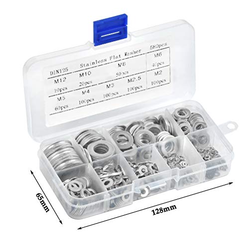 580pcs Rondelle Piatte Acciaio Inossidabile, Assortimento di Rondelle Acciaio Inossidabile, Set di Utensili Manuali per Impianti Idraulici e Bloccaggio di Diverse Dimensioni M2 2.5 3 4 5 6 8 10 12