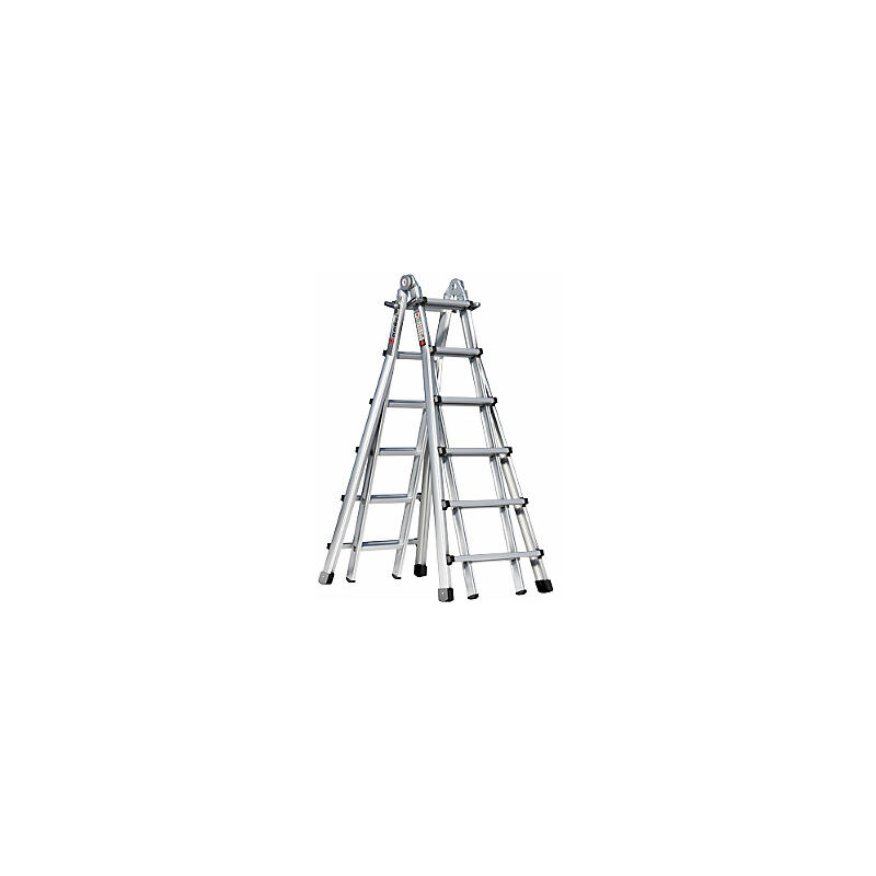 Scala telescopica in alluminio, con montanti telescopici, 4 x 6 pioli. Fornitura = montato. Tipo di prodotto = scale multiuso. Versione da salita = pioli. Numero pioli = 4x6 pz. Materiale telaio = alluminio. Materiale pioli = alluminio. Lunghezza come scala a libro = 3050 mm. Altezza di lavoro come scala a libro = 4350 mm. Lunghezza come scala d'appoggio = 6300 mm. Lunghezza da richiuso = 1800 mm. Altezza di lavoro come scala d'appoggio = 7000 mm. Allungabili un piolo alla volta fino a quasi il doppio dell'altezza iniziale, bloccabili tramite robusti fermi. Da chiuse sono scale a libro molto compatte per il trasporto. Snodo facilmente sbloccabile. Regolazione dell'altezza semplice e assolutamente sicura.