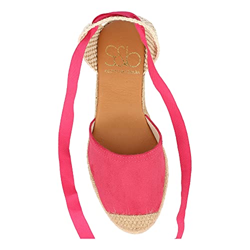 59510-Espadrillas con Zeppa da Donna, Sandalo Chiuso Stile Valenciano, Prodotto in Spagna, 4 Corde di Iuta, Cinturini alla Caviglia, Primavera Estate 2021. Taglia 41 Fucsia