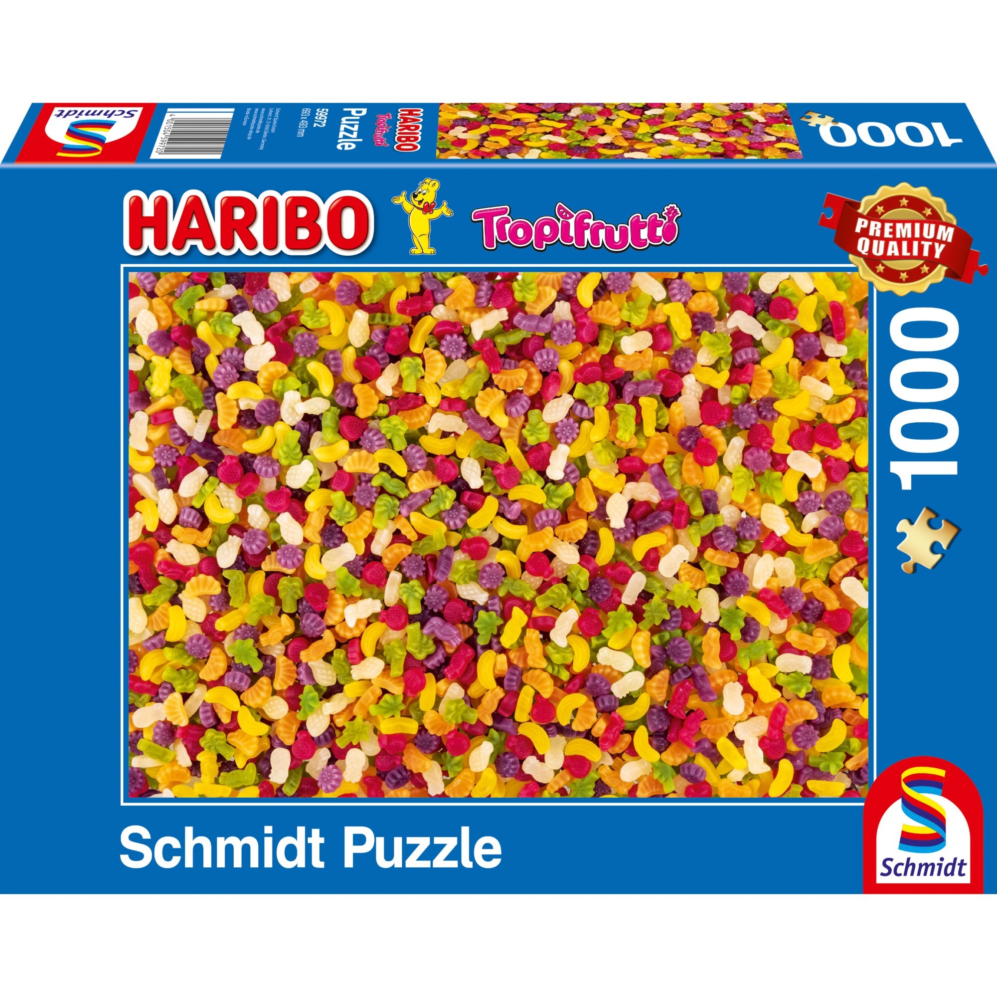 I puzzle della serie premium di Schmidt Spiele convincono con un''elevata varietà di forme, la massima precisione di vestibilità e una speciale lacca opaca per puzzle senza specchi. Questo puzzle mostra Haribo Tropifruti come motivo.