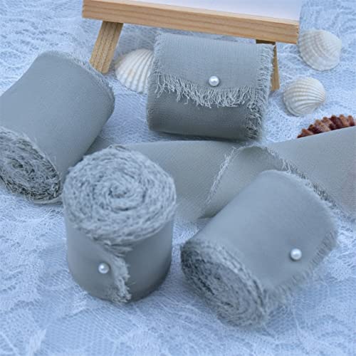 4.5cmx5.5m Dusty Blu Sfrangiato Chiffon Nastro di Seta Handmade Fringe Ribbon Bouquets Invito di Nozze Regalo Wrapping Decor