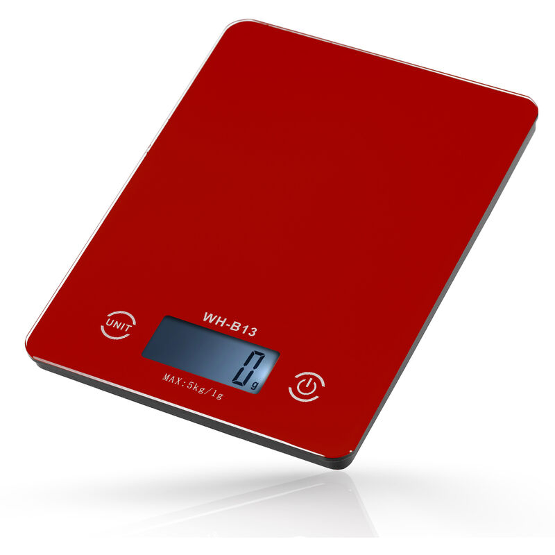 indicazione di sovraccarico, spegnimento automatico, tutto ciò rende questa bilancia molto conveniente. Perfetto da usare per: verdura, frutta, latte, farina, chicchi di caffè, prodotti ecc. Caratteristiche: Display LCD con funzione di retroilluminazione, dati chiari. alta precisione: +/-1g. Design touch screen, risposta rapida. 3 diverse unità da scambiare: g, oz, lb(1000g=35.27oz=2.2lb). Indicazione di batteria scarica e sovraccarico. Superficie in vetro temperato, solida e facile da pulire. Spegnimento automatico 120 secondi o chiusura manuale. Funzione speciale di tara per una pesatura più facile e più ampia. Specifiche: Colore: bianco/rosso/nero (opzionale) />Materiale: vetro