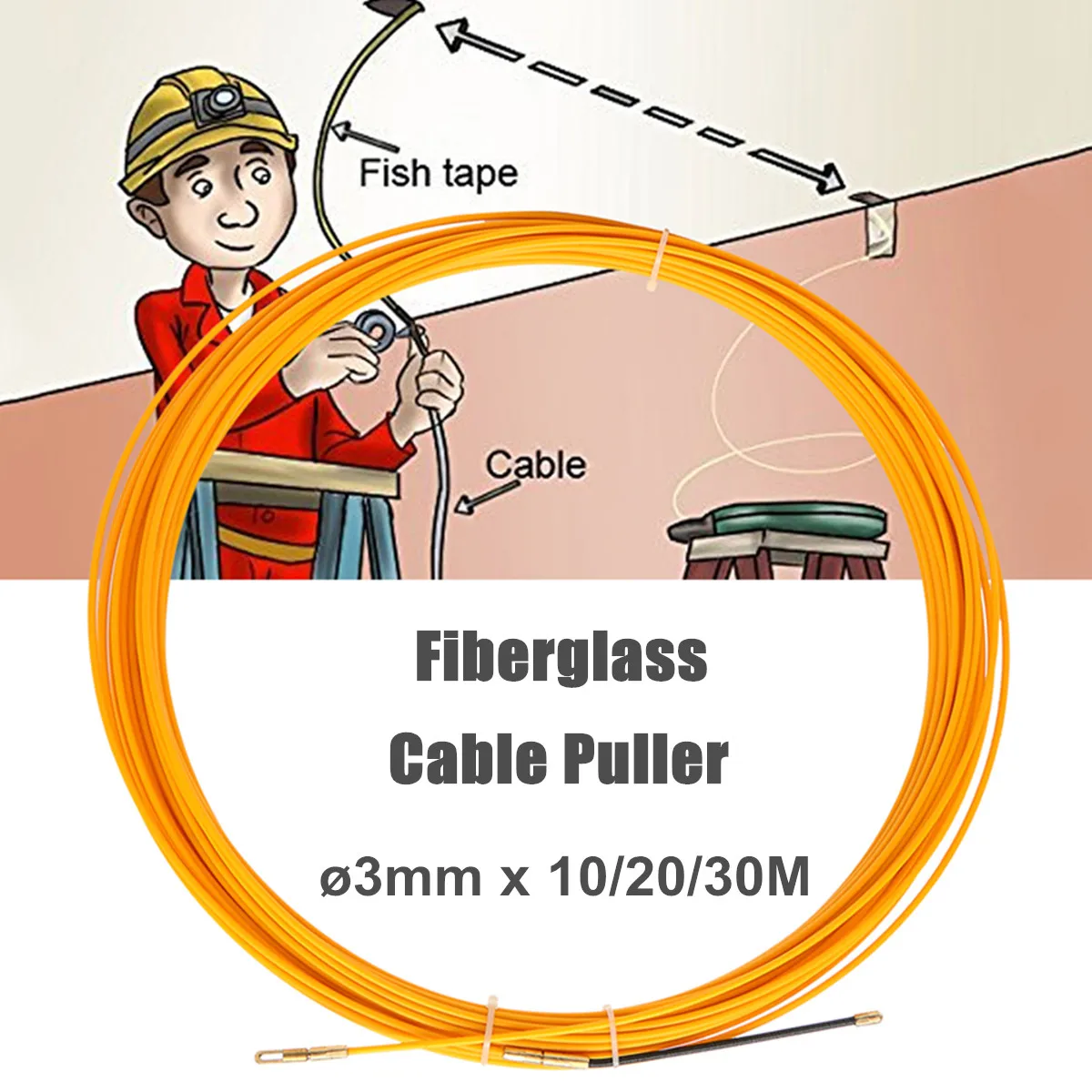 5M/20M/30M/40M Cable Gland Puller Fish Tape Yellow Cable Fiberglass Fish Tape Reel Puller Fiberglass Metal Wall Wire Conduit
