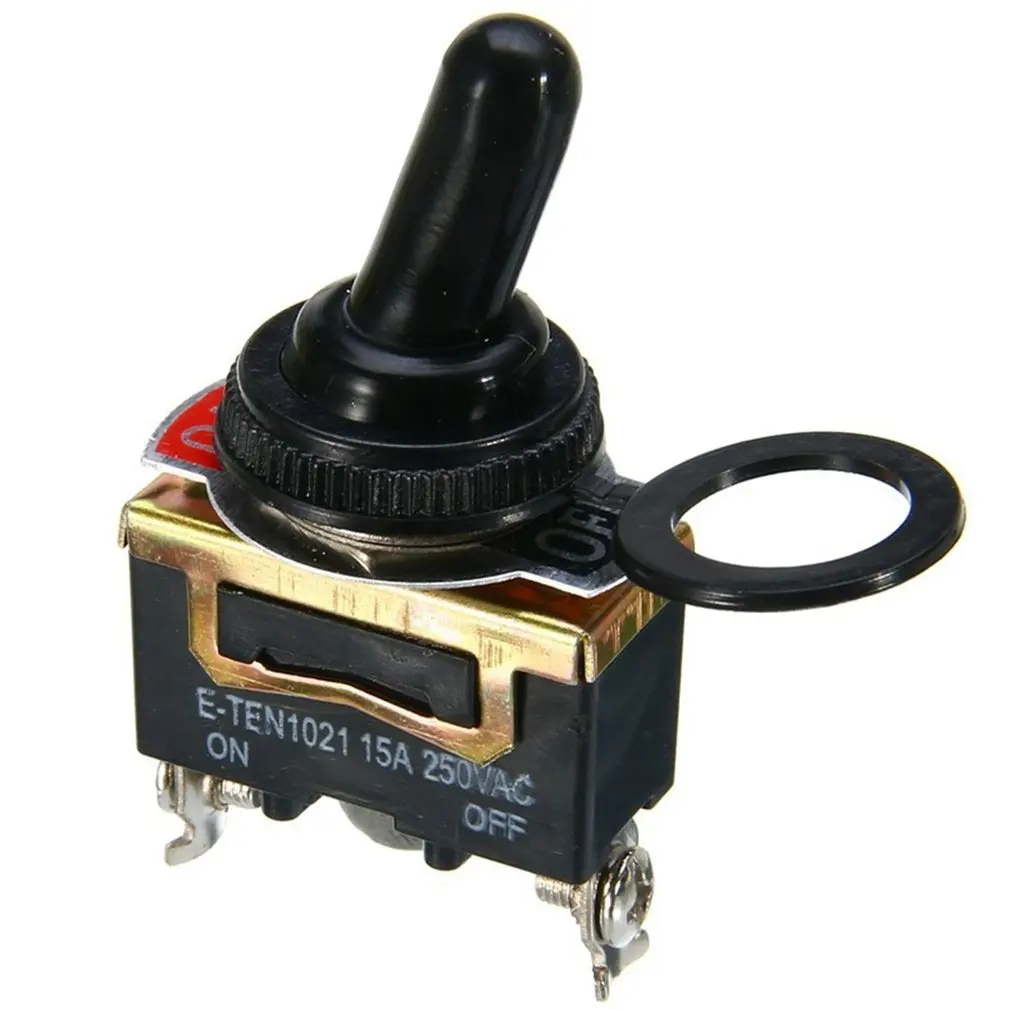 5Pcs 15A 250V SPST Control 2Pins 2 Terminal ON/OFF Toggle Rocker Switch Waterproof Boot Car Boat Auto Kit Heavy Duty