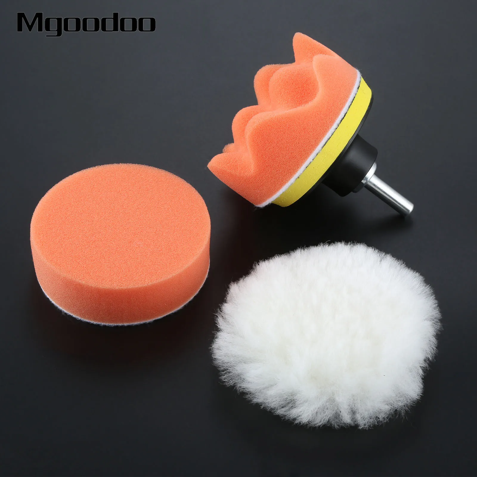 5Pcs 3inch Car Polishing Buffing Pad Kit For Polisher Waxing Car Wash +M10 Drill Set Car Polishing Sponge Wheel Kit Polisher