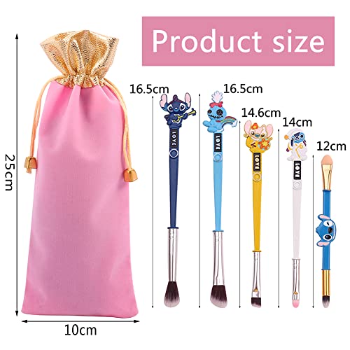 5Pcs Anime Sti-tch Makeup Brush Set,Sti-tch Eyeshado Pennello per cipria Modalità Fata Pennello,Carino Interstellar Bambino Tema Fata Pennelli Trucco per il trucco delle ragazze