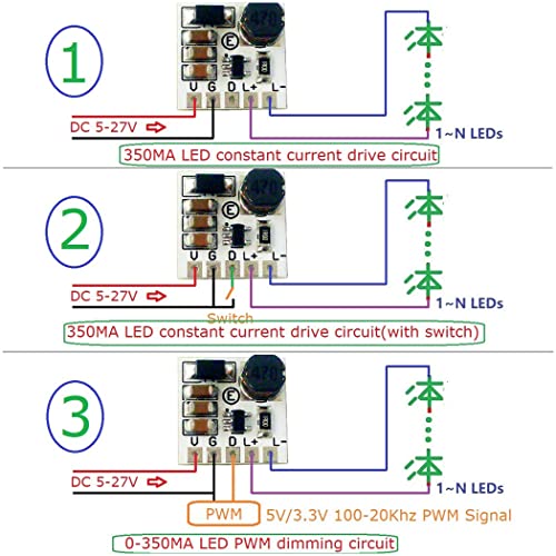 Tensione di lavoro: DC 5-27V (perfetto per 5V 6V 9V 12V 18V 24V LED Driver)