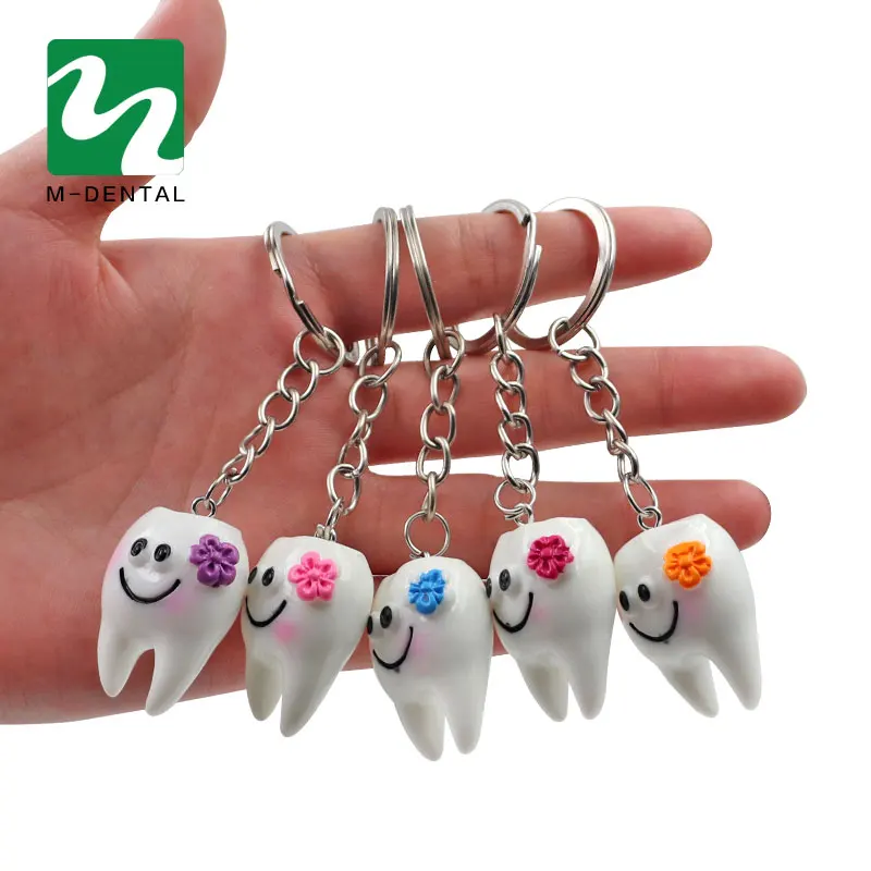 5Pcs Dental Simulation Tooth Pendant Keychain Lovely Cartoon Dental Decorative Accessories Promotional Gifts