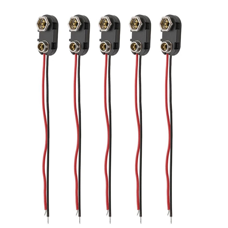 5Pcs Plastic Hard Shell I Type 9V Battery Snap Connector 9V Battery Clips Buckle Lead Wires Holder Length 15CM