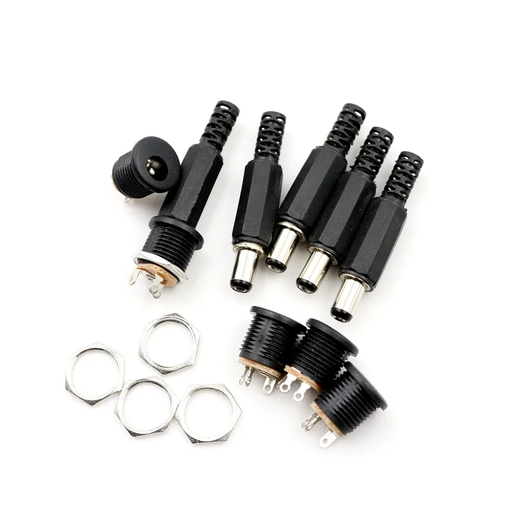New 5Pcs Practical Female Panel Socket Mount Adapter Male DC Power Plug Connector+5 Pcs Screw LockR06 5.5mm X 2.1mm