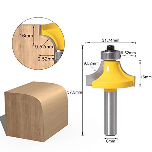5pcs Bit di Router Gambo 8mm Set di Utensili ad Angolo Arrotondato Acciaio al Carbonio Utensili da Taglio Professionali per Legno Bit diRouter per Taglio da Cornice per Arrotondare il Legno