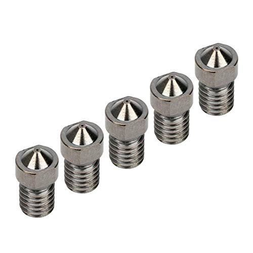 5Pcs Ugello per stampante 3D Ugelli per estrusore in acciaio temprato Testine di stampa Ugelli per filettatura M6x1 a punta ad alta temperatura Accessori per stampante 3D(0.4mm)