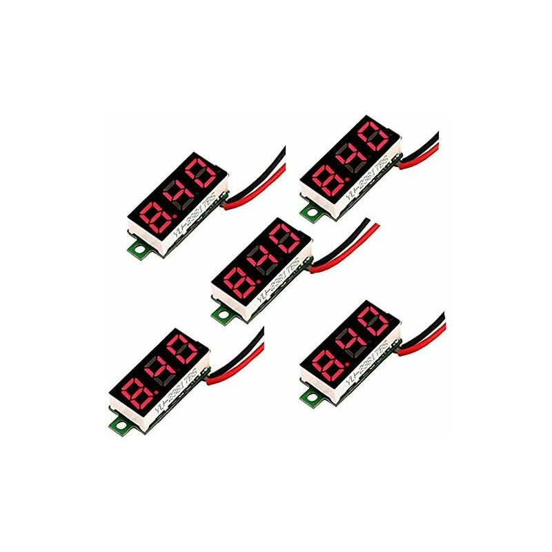 Specifiche: mini tester di tensione da 5 pezzi (rosso) Gamma di misurazione: CC 2,4-30 V Alta qualità: prestazioni stabili e alta precisione. Se la tensione è inferiore a 10 V, la risoluzione è 0,01 V. La risoluzione della tensione superiore a 10 V è 0,1 V. Ciò garantisce sia precisione di misurazione che tensioni più elevate. Comodo e facile da montare: di piccole dimensioni e leggero. Protezione da connessione inversa e voltmetro digitale a 2 fili, facile da installare e collegare.