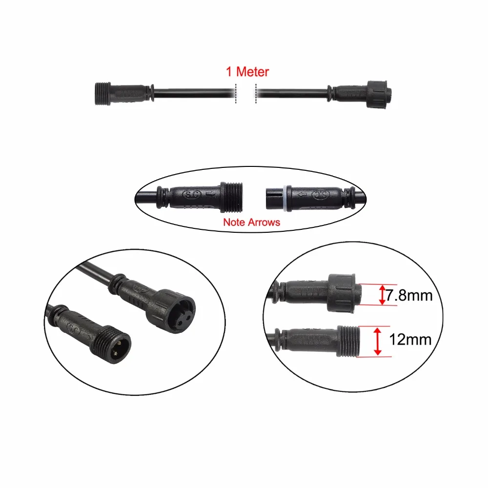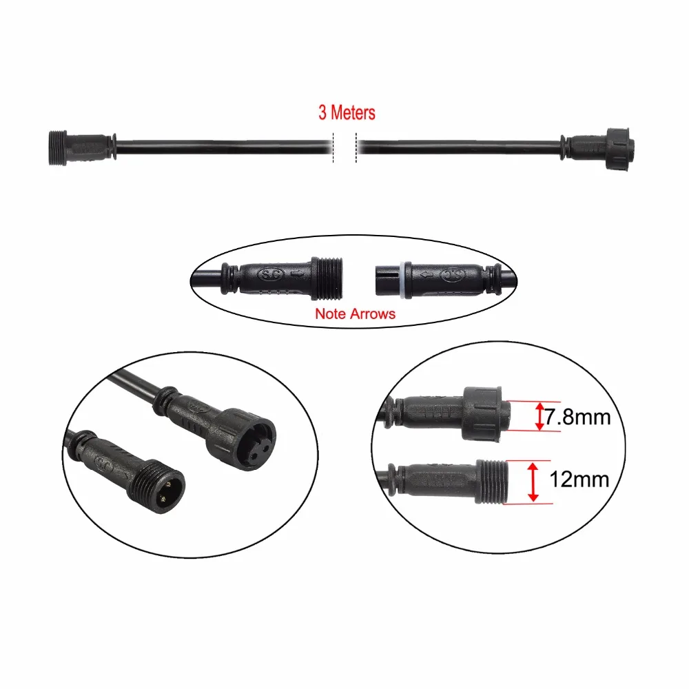 5pcs/Pack 2PIN 1m/2m/3m Extension Cable IP67 Waterproof Connect Wire Power Cord for Single Color LED Light Lamps