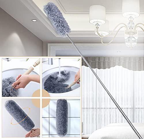 Set di utensili per spolverare da 5 pezzi: include un asta telescopica in acciaio inox estensibile(79-252 cm), una spazzola per polvere in microfibra, una spazzola per polvere in ciniglia e una spazzola per fessure,una panno piatto per la polvere