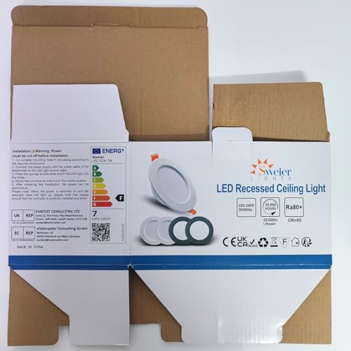 【Alta qualità, facile installazione】Il faretto da incasso a LED a pannello sottile è certificato CE e ROHS, altezza 35mm, diametro esterno 98mm, AC 220-240V (non è necessario il trasformatore), la dimensione dell'apertura è di 70-80mm, adatto per spazi ristretti sul soffitto.