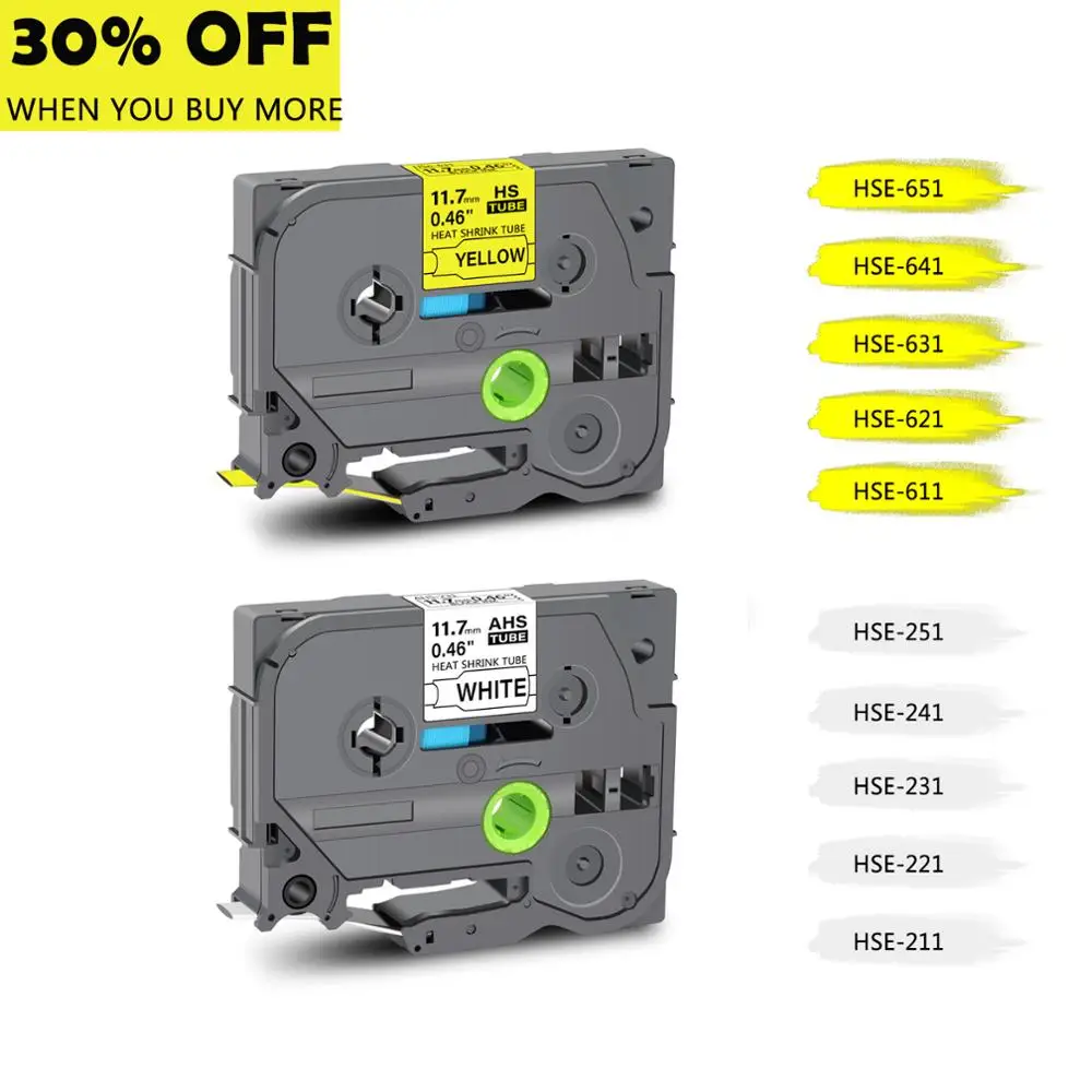 6-24mm Black on White Yellow Heat Shrink Tube Tape Cassette HSE-211 221 231 241 251 611 621 631 641 651 for Brother P-Touch