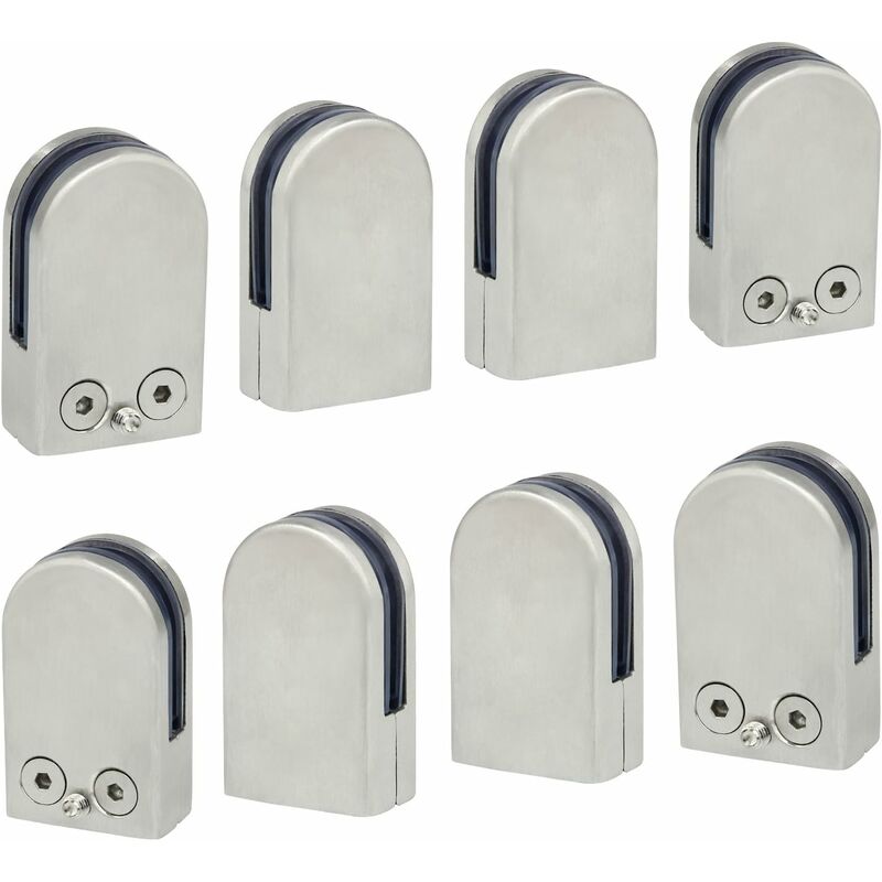 danni. Regolabile - Progettato per essere utilizzato su vetro temperato Spessore 6-8 mm. Le guarnizioni in gomma forniscono una solida presa sul vetro. Clip per vetro - La base piatta consente l'installazione su tubi quadrati. o altre superfici piane. Sicuro: la guarnizione in gomma può essere attaccata in modo stabile e sicuro al vetro, ideale per fissare il vetro di balaustre, scale, balaustre ecc.