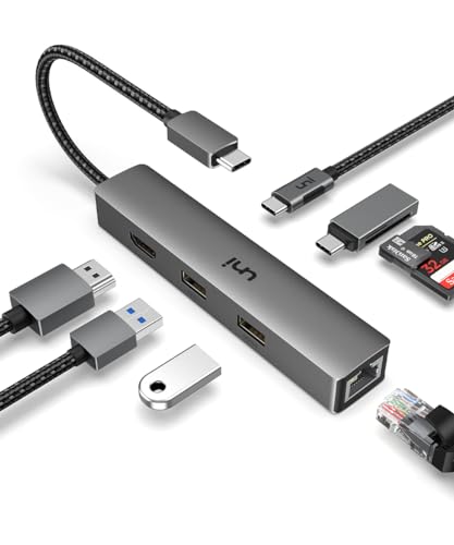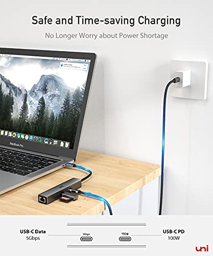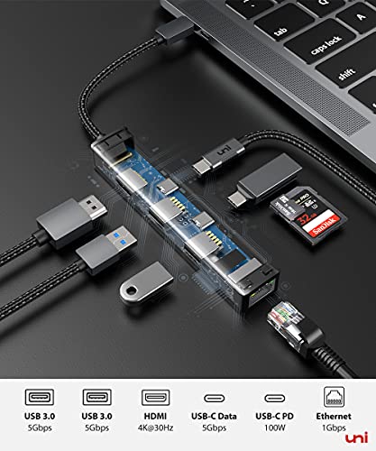 Hub USB C 6-in-1, uni Adattatore USB-C multiporta 100 W PD, 1 Gbps Ethernet, 2 porte USB 3.0, HDMI 4K, porta dati USB C, [Compatibile con Thunderbolt 3/4], per MacBook Pro/Air M1, XPS 13 ecc.