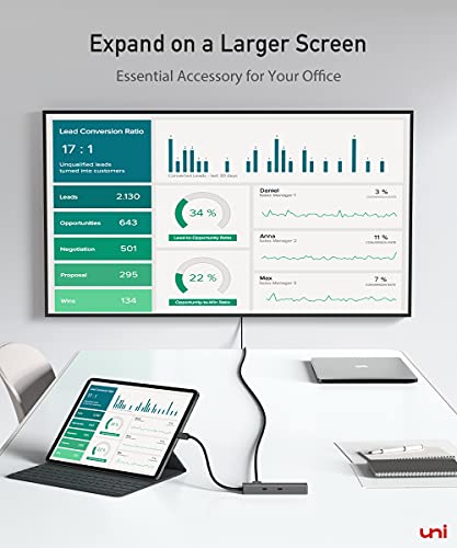 【Display 4K cristallino】 È possibile eseguire il mirroring o estendere lo schermo a risoluzioni fino a 4K@30Hz (3840x2160) e est également rétrocompatible con 2K (2560x1440)@60Hz, 1080P (1920x1080)@120Hz. tramite la porta HDMI e trasmettere video/audio a monitor/proiettori/TV compatibili con HDMI (Nota: il dispositivo deve supportare la visualizzazione multimediale).