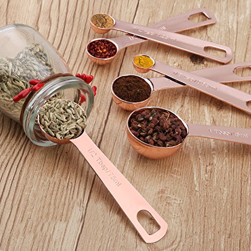6-pack misurini, Usen cucchiai dosatori in acciaio INOX - non arrugginisce - Gorgeous & heavy duty, lucidato a specchio, ideale per tutti gli ingredienti, rosa dorato