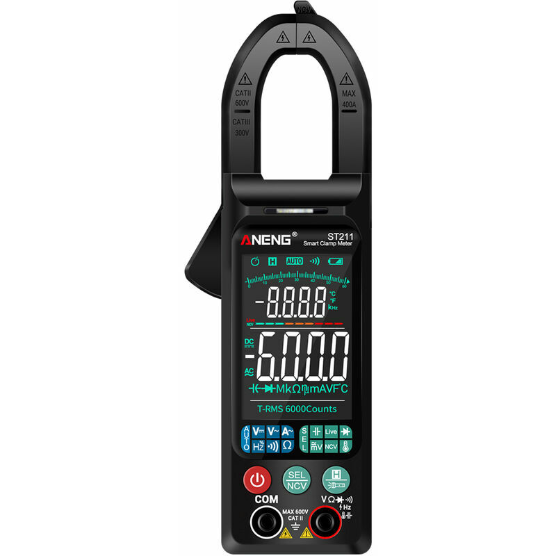 Specifiche: Modello: ST211 Materiale: ABS Colore: nero/rosso (opzionale) Alimentazione: 2 batterie AAA (NON incluse) Display: schermo LCD Conteggio massimo: 6.000 punti< br /> Apertura della ganascia: 25 mm/0,98 pollici Intervallo di tensione CC: 0~600 V+(0,5%+3) /> Intervallo di tensione CA: 0~ 600V+plusmn;