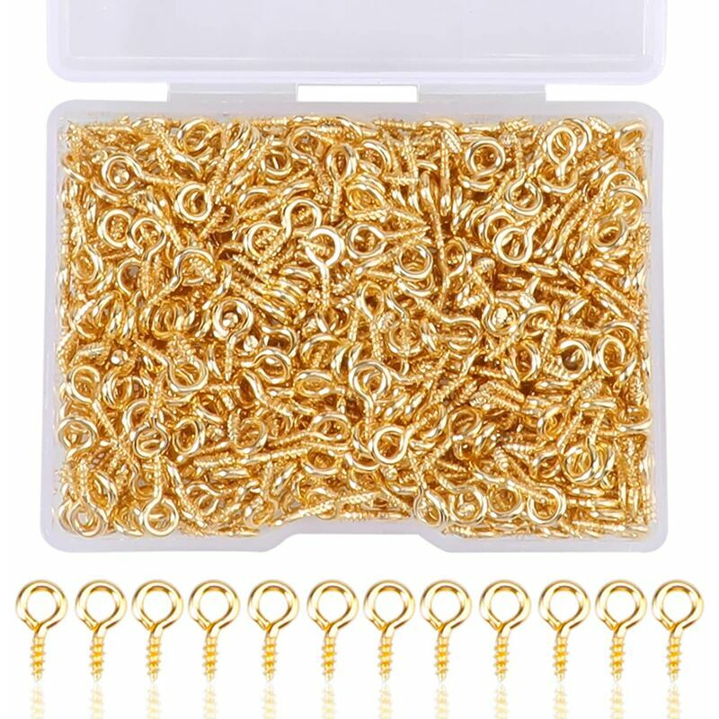 600 pezzi di perni a vite d'oro - Quantità sufficiente nella confezione per soddisfare le tue molteplici esigenze, puoi usarli per fissare lampade a sospensione o puoi usarli per fissare piccoli accessori Accessori per gioielli - La nostra vite i ganci sono realizzati in acciaio inossidabile con superficie nichelata per renderlo liscio e non graffiare i tuoi oggetti importanti, e antiruggine e durevoli per un uso prolungato, le parti necessarie per realizzare piccoli gioielli, come bracciali, collane, orecchini, cavigliere e molti ornamenti Facile da installare: le viti profonde e le porte a vite appuntite sono facili da installare e durevoli. Ogni estremità della vite ha una punta affusolata, che consente a questi ganci a vite di penetrare facilmente nel legno e in altri materiali morbidi solo a mano, quindi è possibile continuare a ruotare il gancio utilizzando un tassello adatto fino a #39;