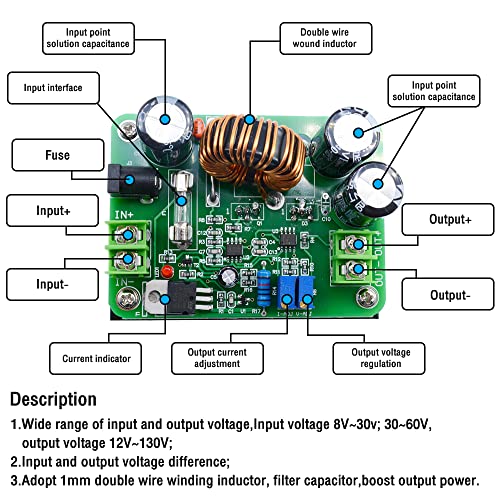 600W 10A DC-DC Boost Converter Step-up Modulo auto Alimentazione 12-60V a 12-80V.