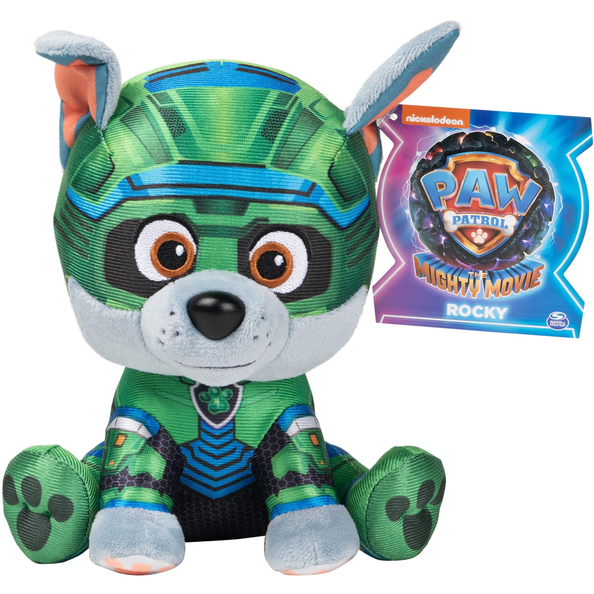 Naturalmente, Rocky è anche uno degli eroi di "The Mighty Movie", in cui la Paw Patrol deve ancora una volta superare molte sfide. E con questo peluche di alta qualità, i bambini dai 12 mesi possono rievocare le scene più belle del film. Il peluche è alto circa 15 centimetri e può essere facilmente pulito con un panno umido dopo un gioco particolarmente selvaggio.