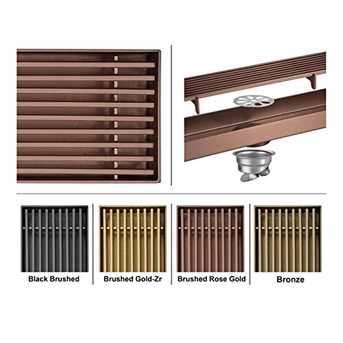 Acciaio inossidabile premium: lo scarico lineare della doccia è realizzato in acciaio inossidabile 304 di alta qualità, ha una maggiore durata. È inoltre realizzato con una tecnologia di produzione speciale per prevenire la corrosione e la ruggine