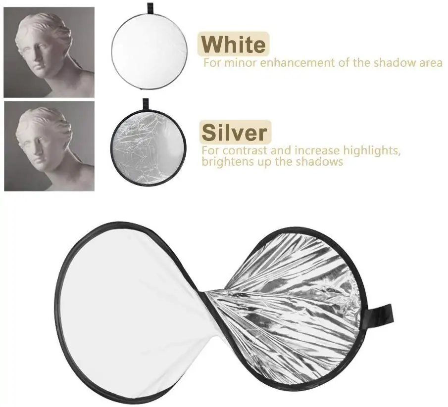 23.6" 60cm 2 in1 Collapsible Portable Light Reflector Round Photo Studio Diffuser DISC Silver White Studio Photography Reflector