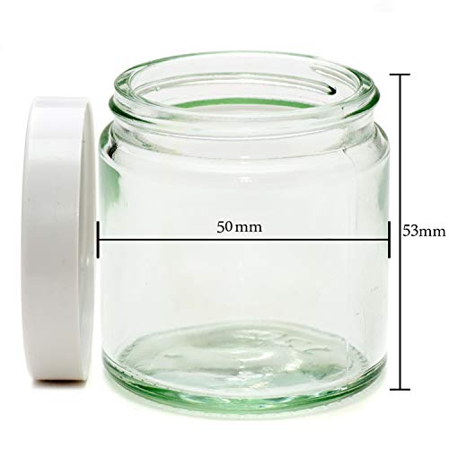 60ml TRASPARENTE Barattoli Di Vetro con bianco Coperchi - confezione da 12