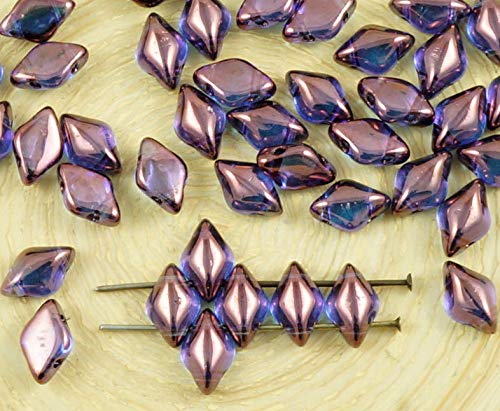 60pcs di Cristallo, Vega, Viola Lustro Matubo GemDuo Rombo Diamanti Due a 2 Fori ceca Perle di Vetro Gemma Duo 8mm x 5mm