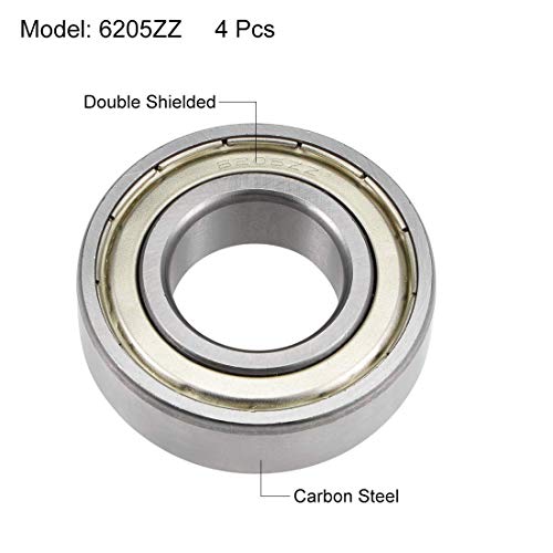 6205ZZ - Cuscinetti a sfera Z2, 25 x 52 x 15 mm, doppia schermata in acciaio al carbonio, 4 pezzi